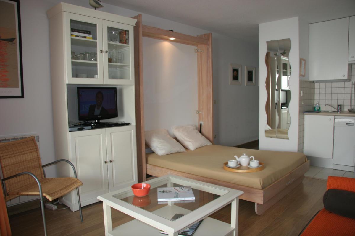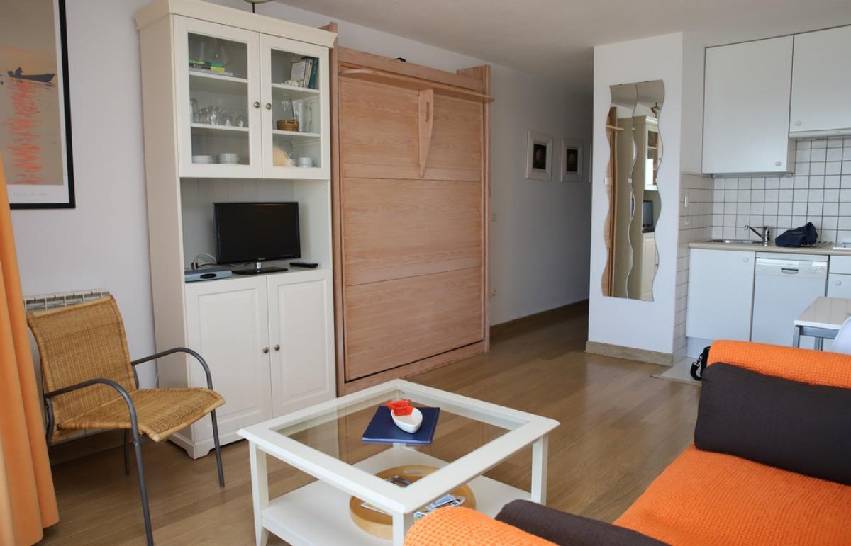 Situé dans la résidence BRITANNIA, Face à la grande plage, le STUDIO (3*** classement officiel des meublés de tourisme) reçoit 2 personnes.